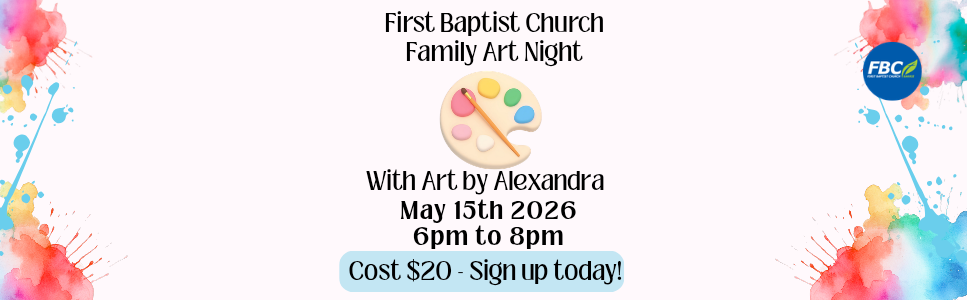 Family Art Night with local artist Alexandra! Come out for a time of creativity and fellowship. Alexandra will lead us in a painting project, teaching techniques as we paint! She has an inspiring testimony filled with hope in times of uncertainty. This event is for the whole family - please fill this form out PER HOUSEHOLD. We look forward to you and your family joining us May 15th at 6pm!